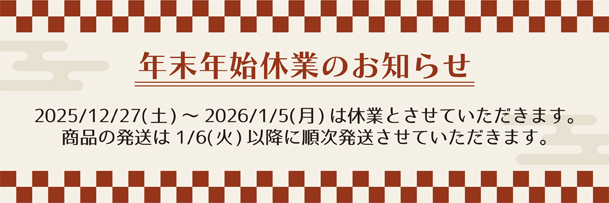 土、日、祝日を休業日とさせていただいております。尚、休業日につきましては、お問合せのお返事、商品発送等、すべての業務をお休みとさせて頂きますのでご了承ください。